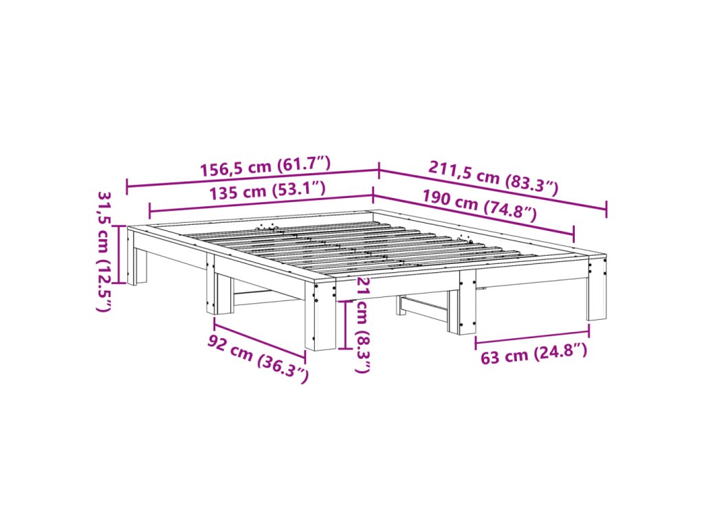 Multidom Posteľ bez matraca 135x190 cm masívna borovica