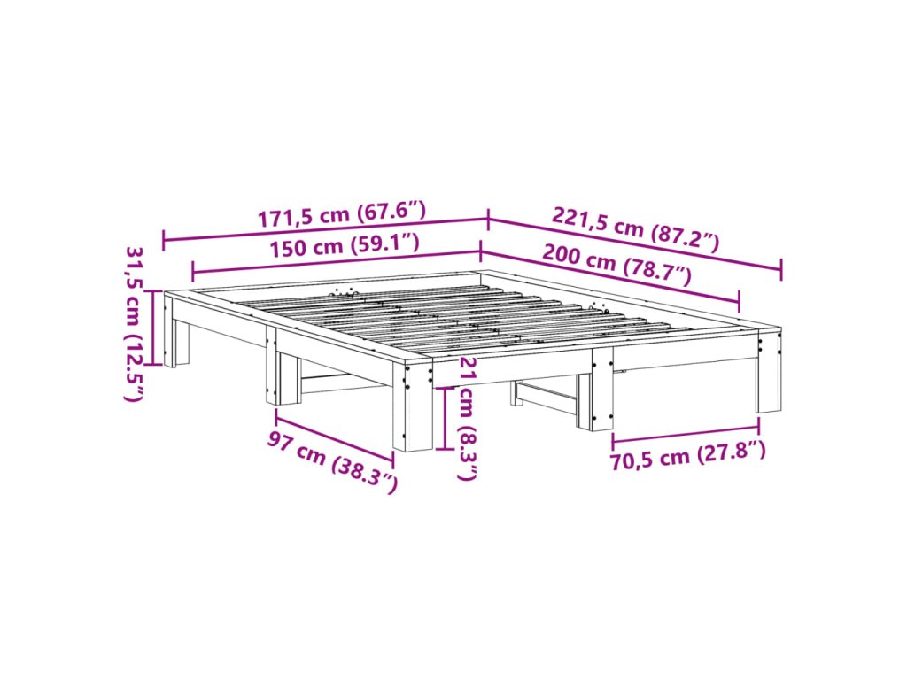 Multidom Posteľ bez matraca 150x200 cm masívna borovica