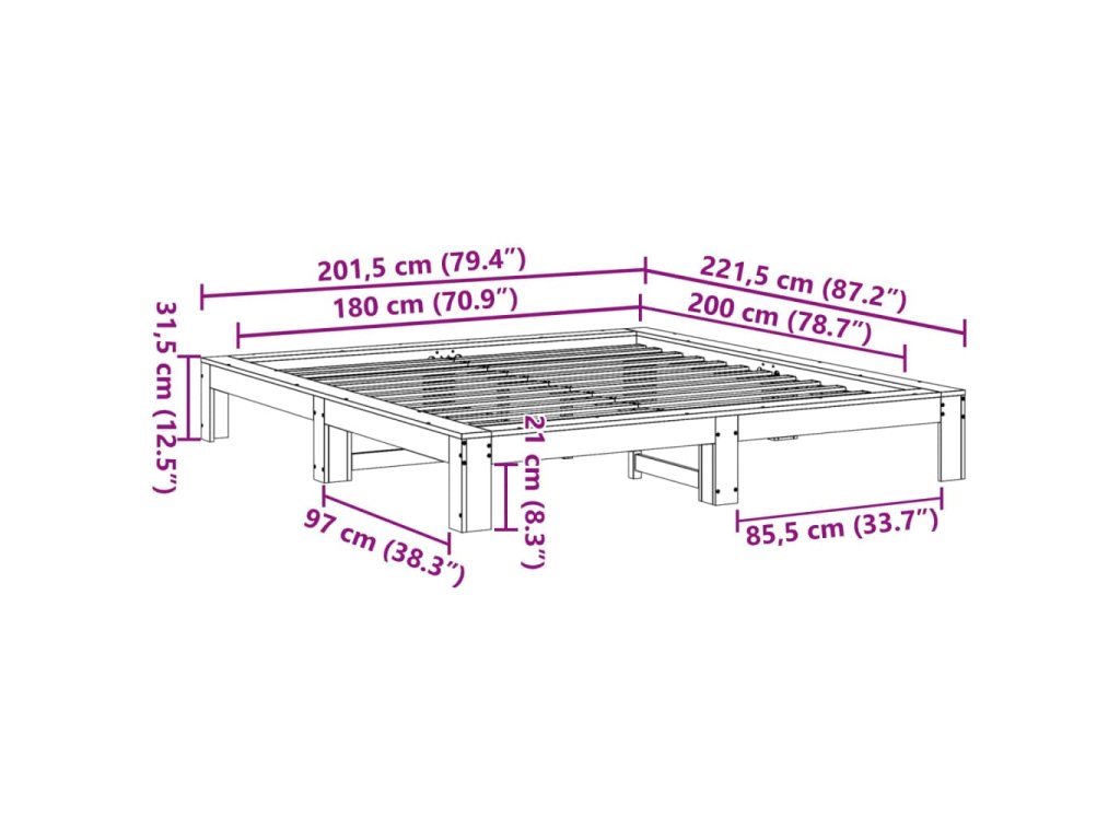 - Stabilný rám s dlhou životnosťou: Masívne borovicové drevo je známe svojou pevnosťou a odolnosťou. Jeho rovná kresba a výrazné uzly prispievajú k jeho rustikálnemu šarmu.