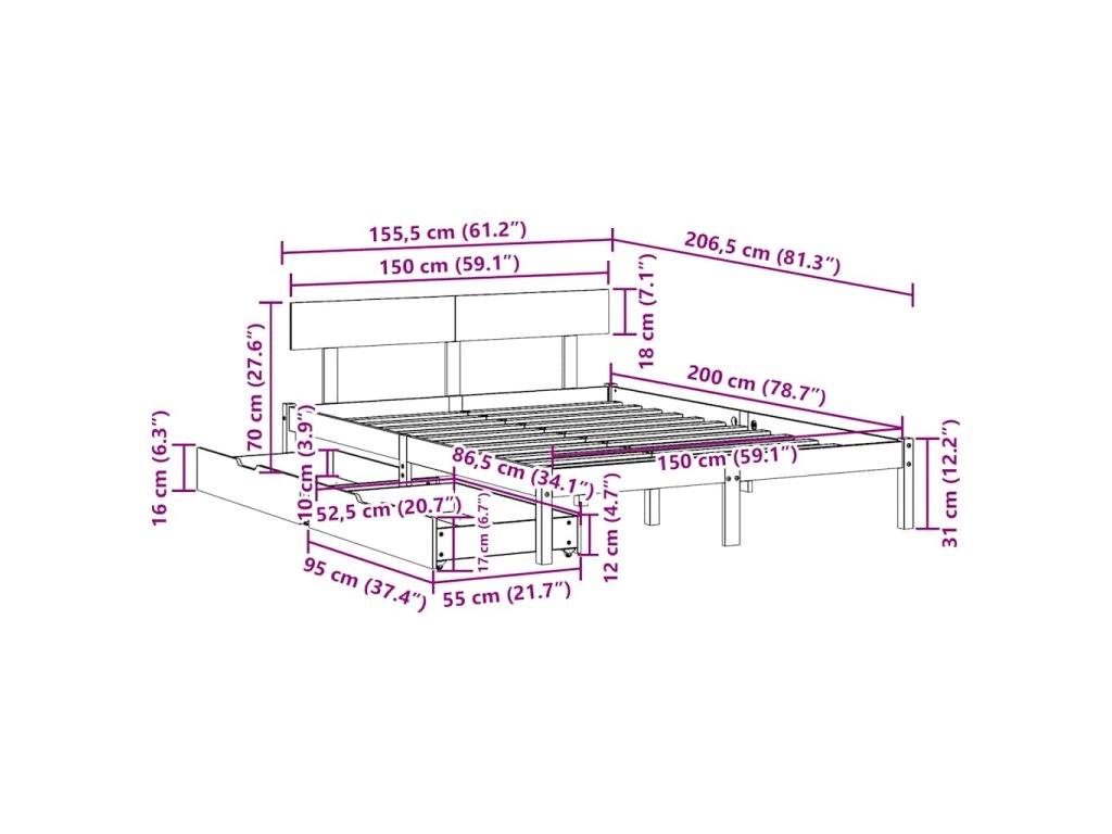 - Vhodné rozmery matraca: 150 x 200 cm (Š x D) (matrac nie je súčasťou balenia)