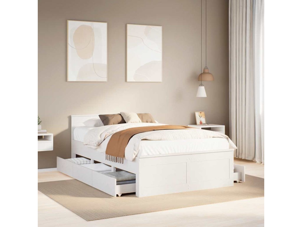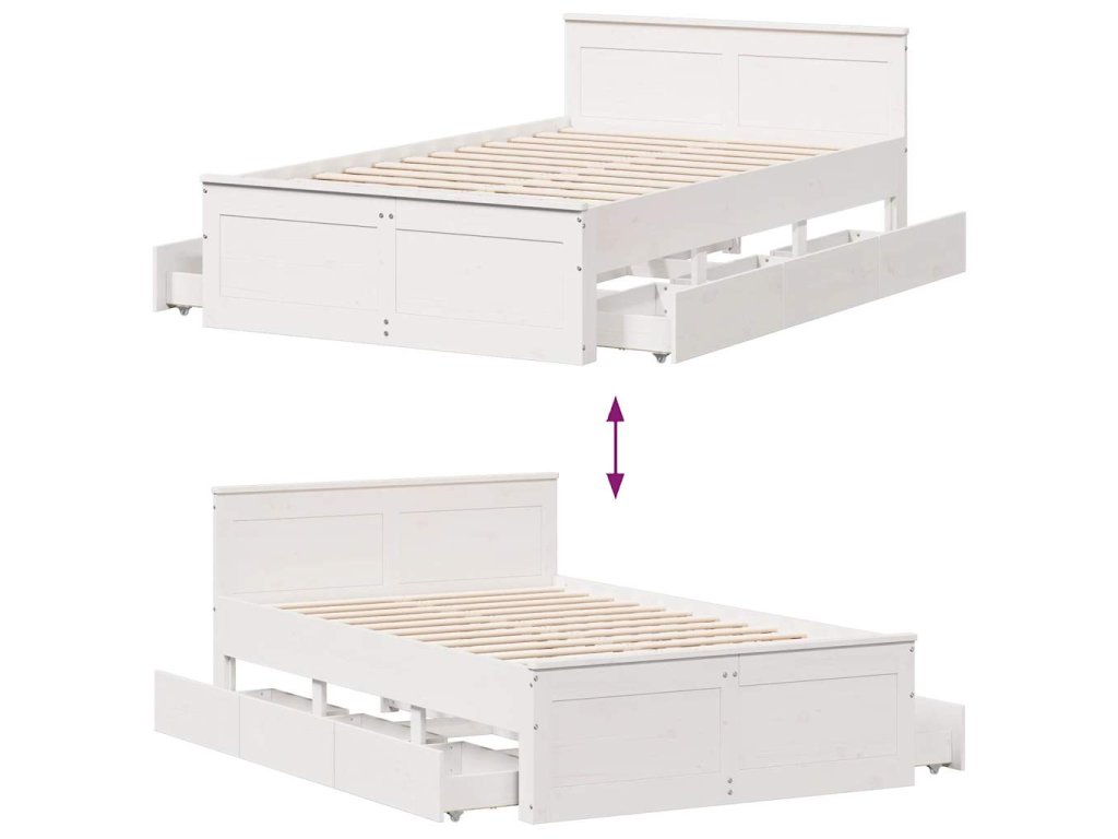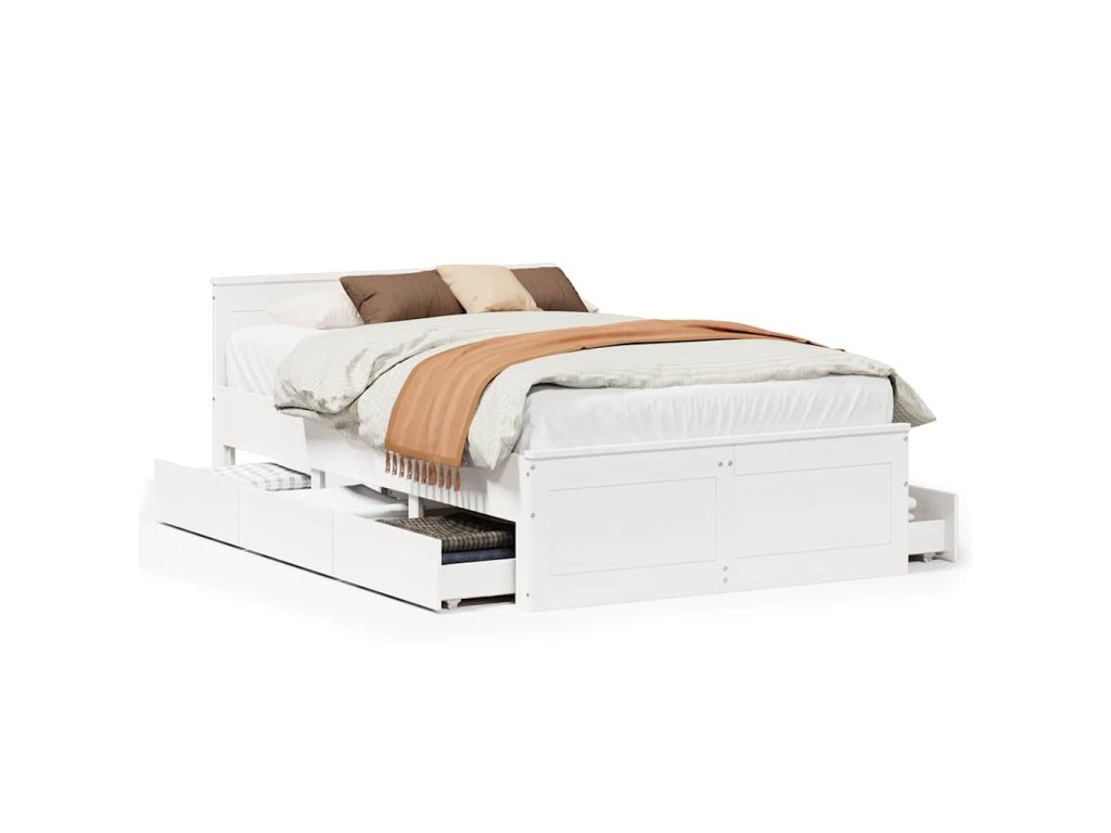 Multidom Posteľ bez matraca s čelom biely 135x190 cm masívna borovica