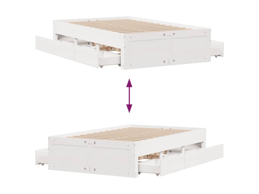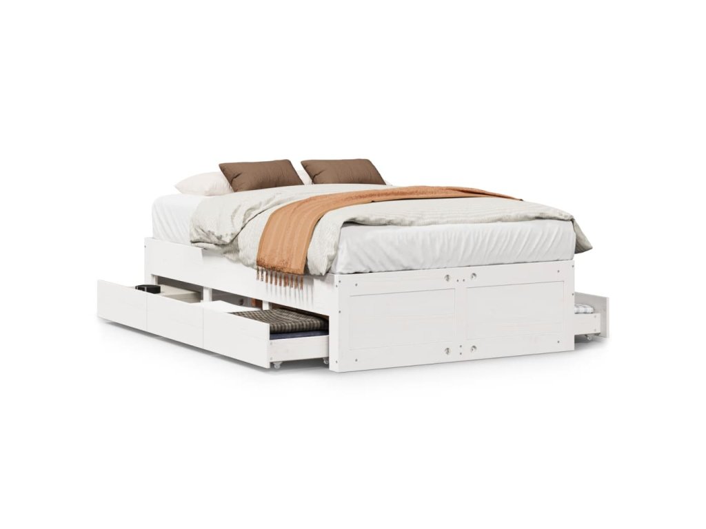 Multidom Posteľ bez matraca so zásuvkami biela 135x190 cm borovica