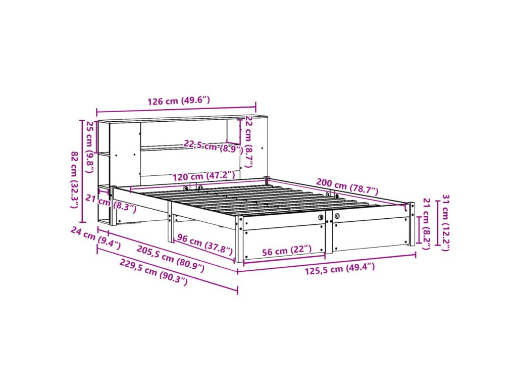 - Celkové rozmery: 205,5 x 125,5 x 31 cm (D x Š x V)