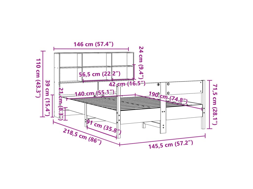 Multidom Posteľ s knižnicou bez matraca 140x190 cm borovicový masív