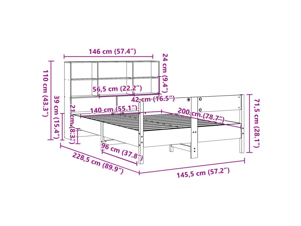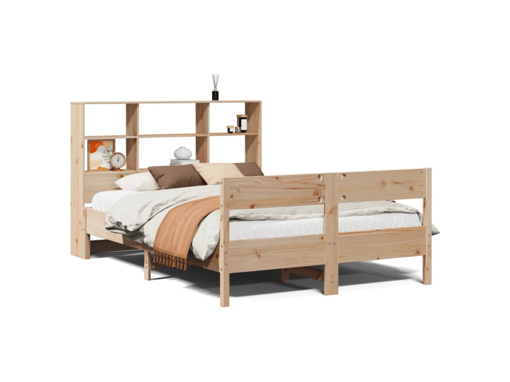 Multidom Posteľ s knižnicou bez matraca 140x200 cm borovicový masív