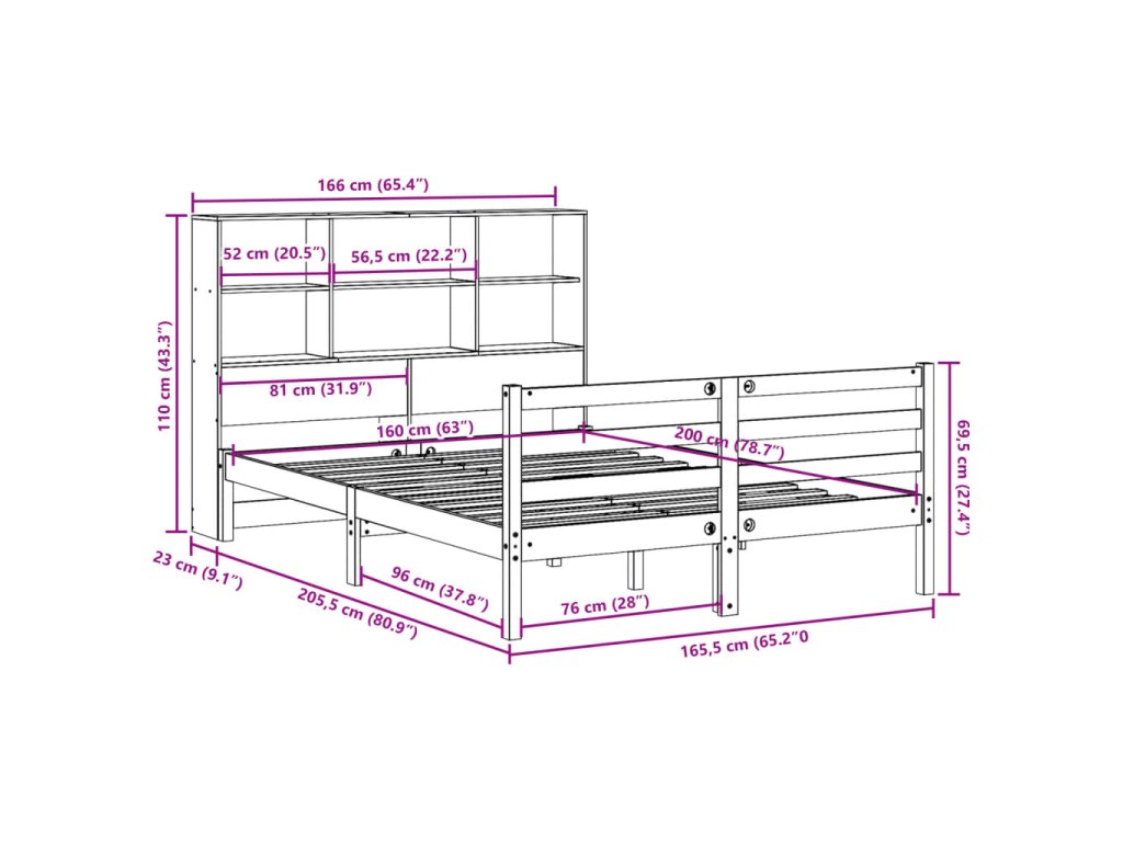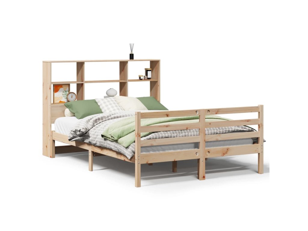 Multidom Posteľ s knižnicou bez matraca 160x200 cm borovicový masív