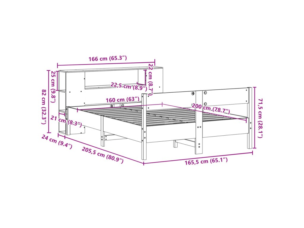 Multidom Posteľ s knižnicou bez matraca 160x200 cm borovicový masív