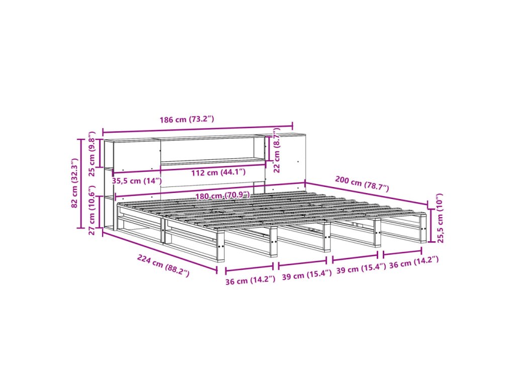 Multidom Posteľ s knižnicou bez matraca 180x200 cm masívne drevo