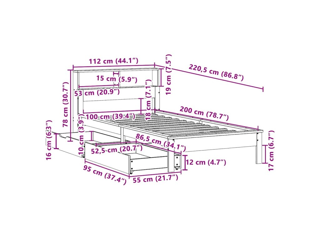 - Rozmery zásuvky postele (každá): 95 x 55 x 17 cm (Š x H x V)