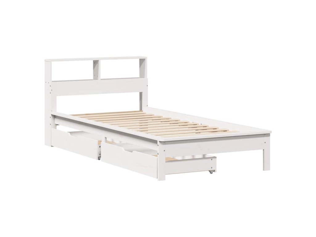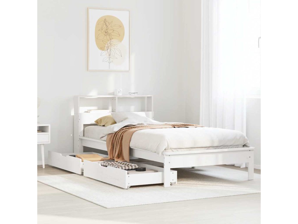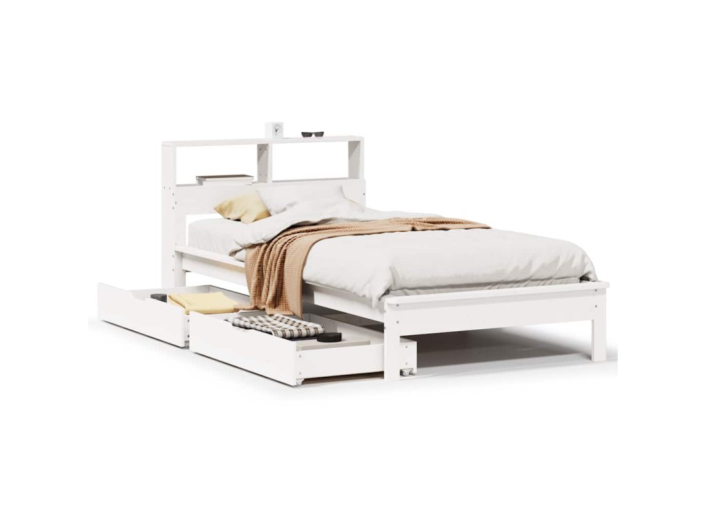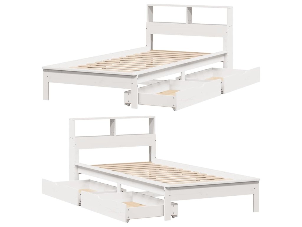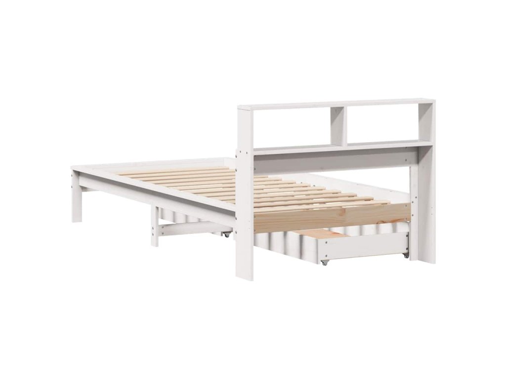 Multidom Posteľ s knižnicou bez matraca biela 100x200cm borovicový masív
