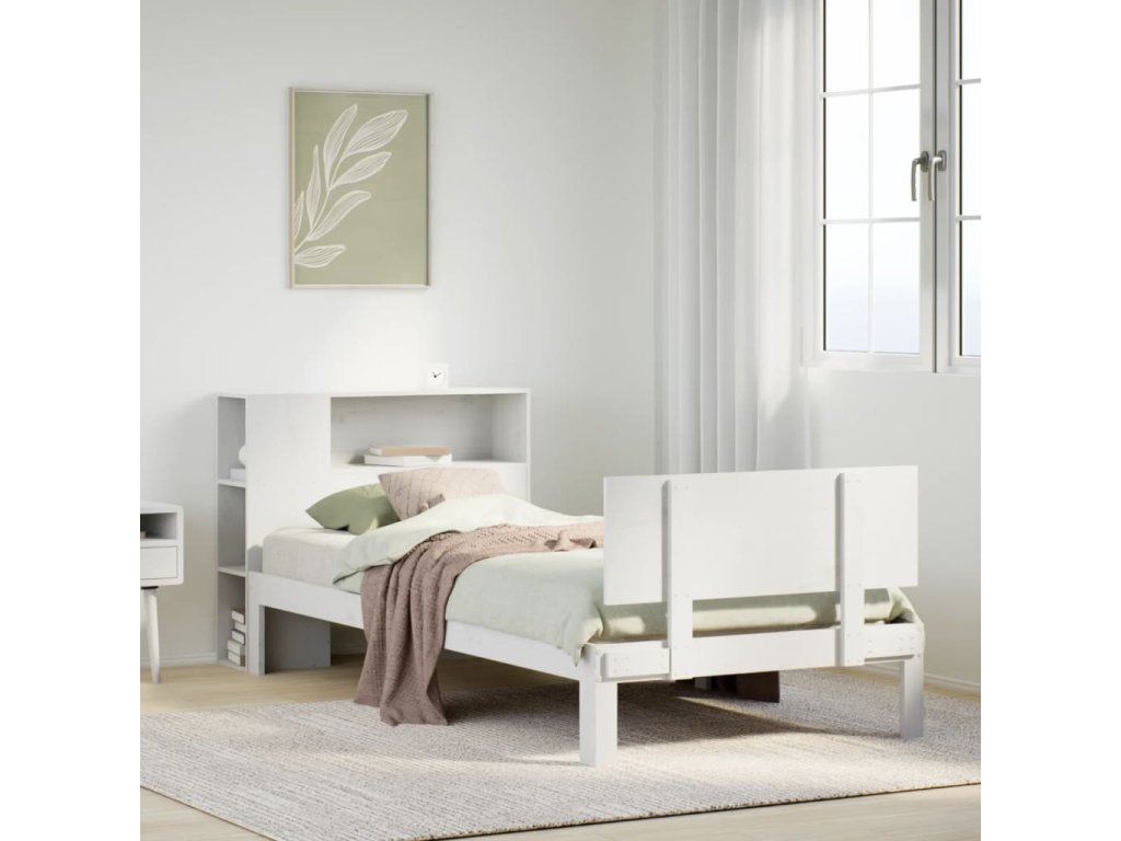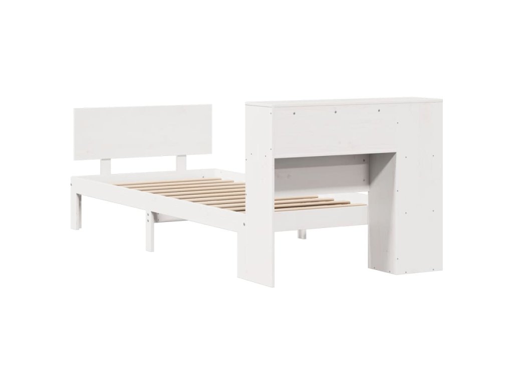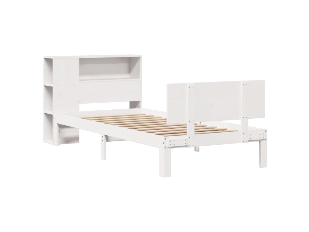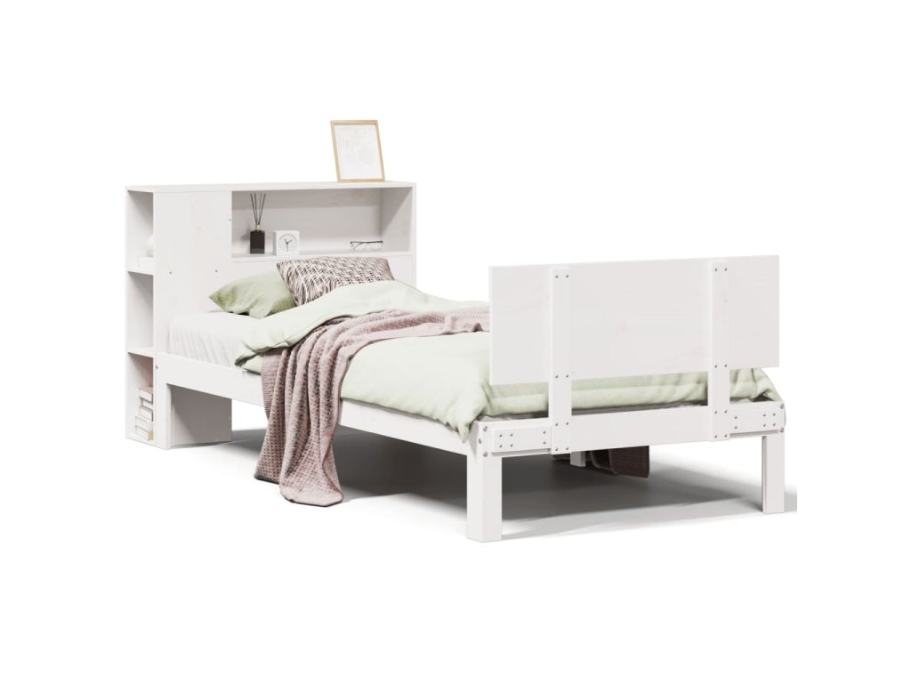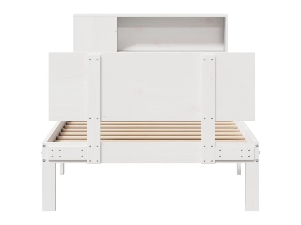 Multidom Posteľ s knižnicou bez matraca biela 100x200cm borovicový masív