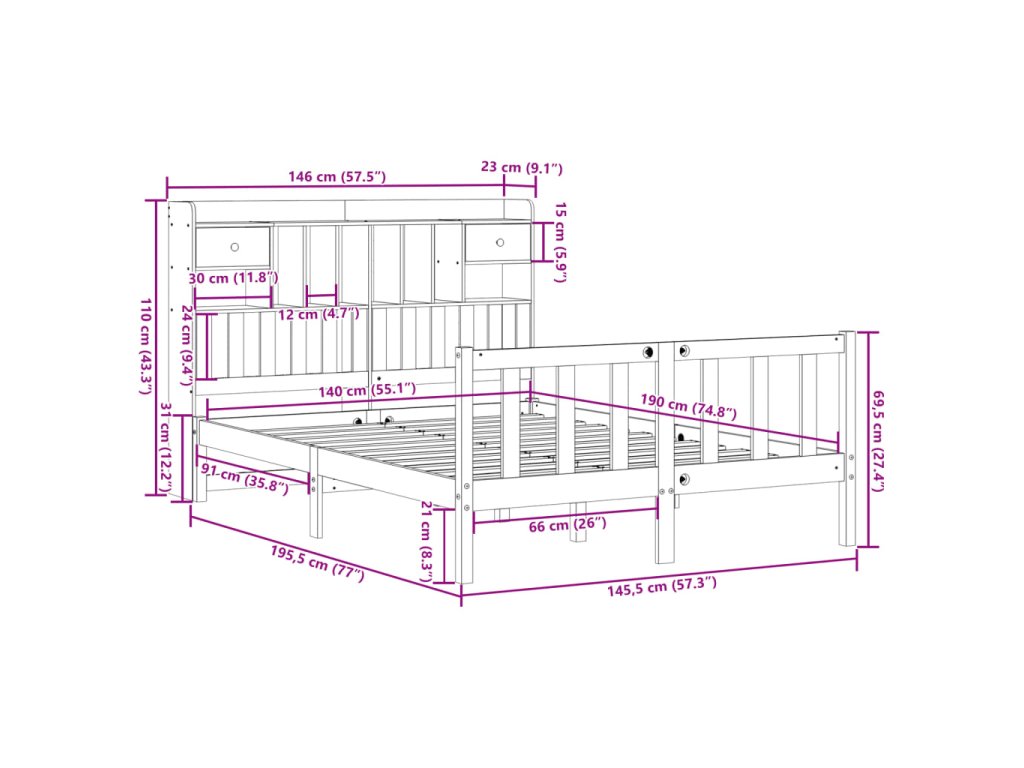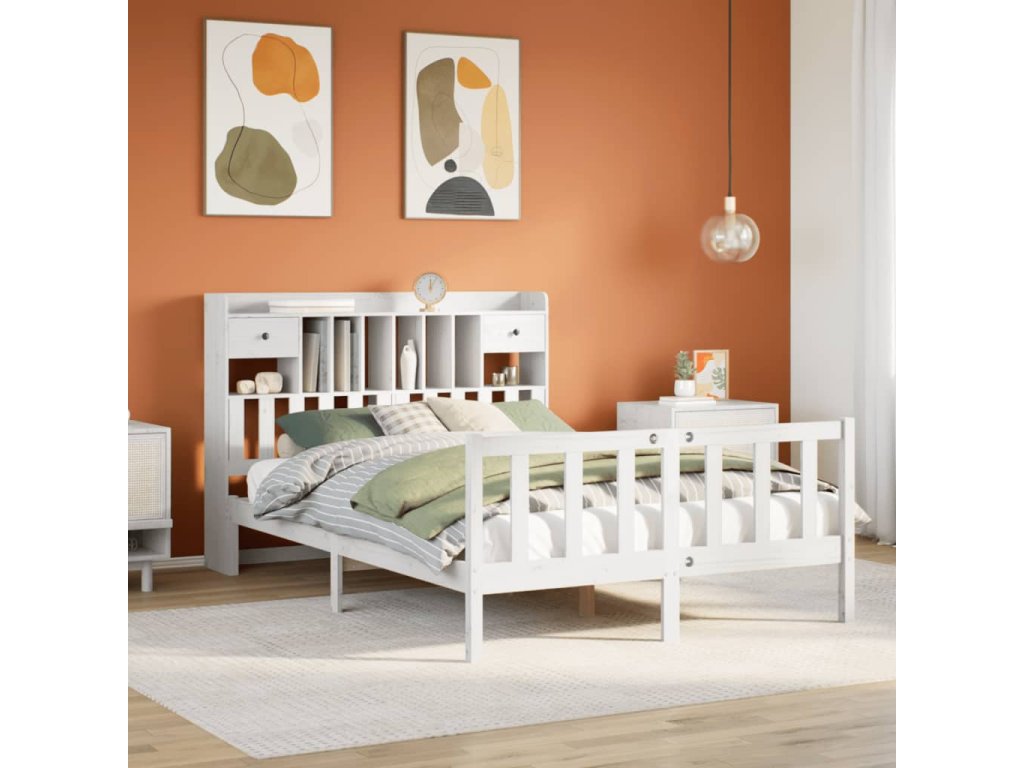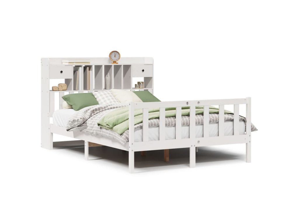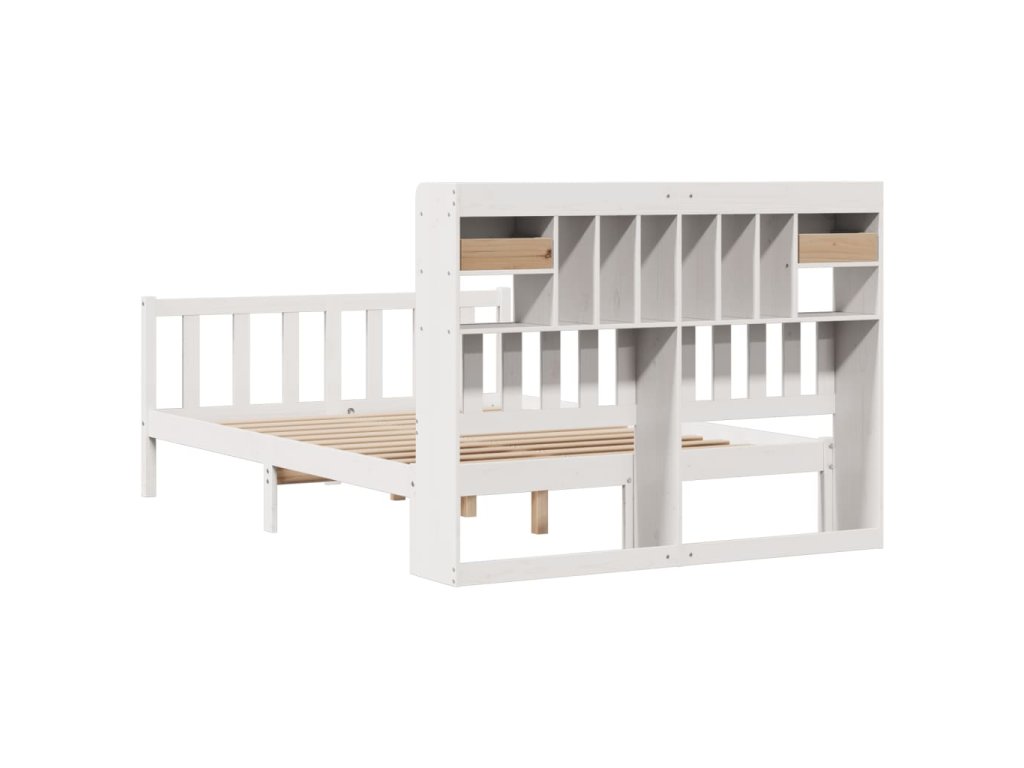 Multidom Posteľ s knižnicou bez matraca biela 140x190cm borovicový masív