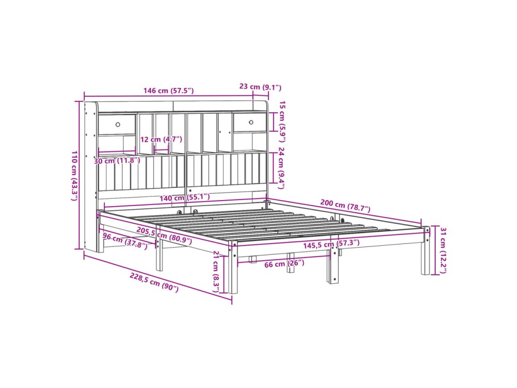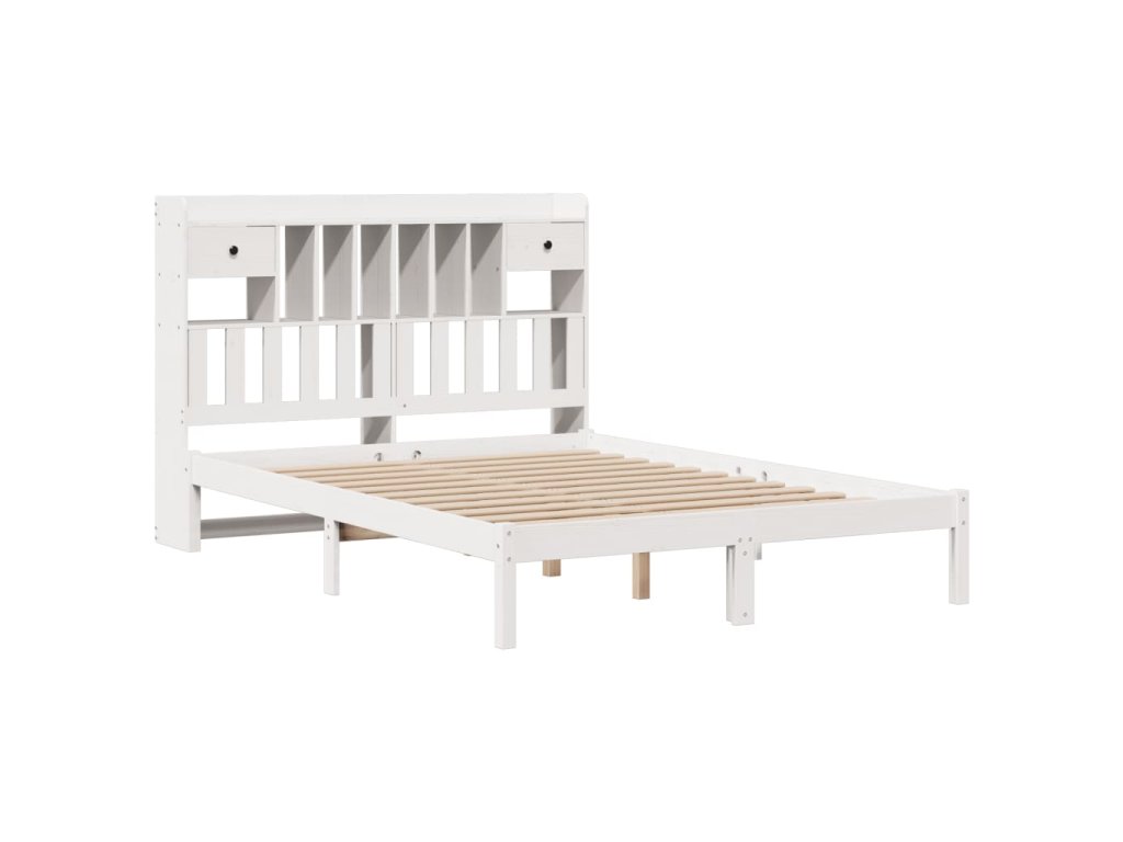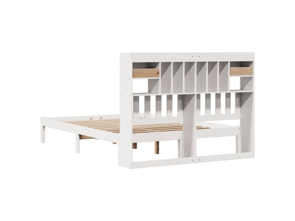 Multidom Posteľ s knižnicou bez matraca biela 140x200cm borovicový masív