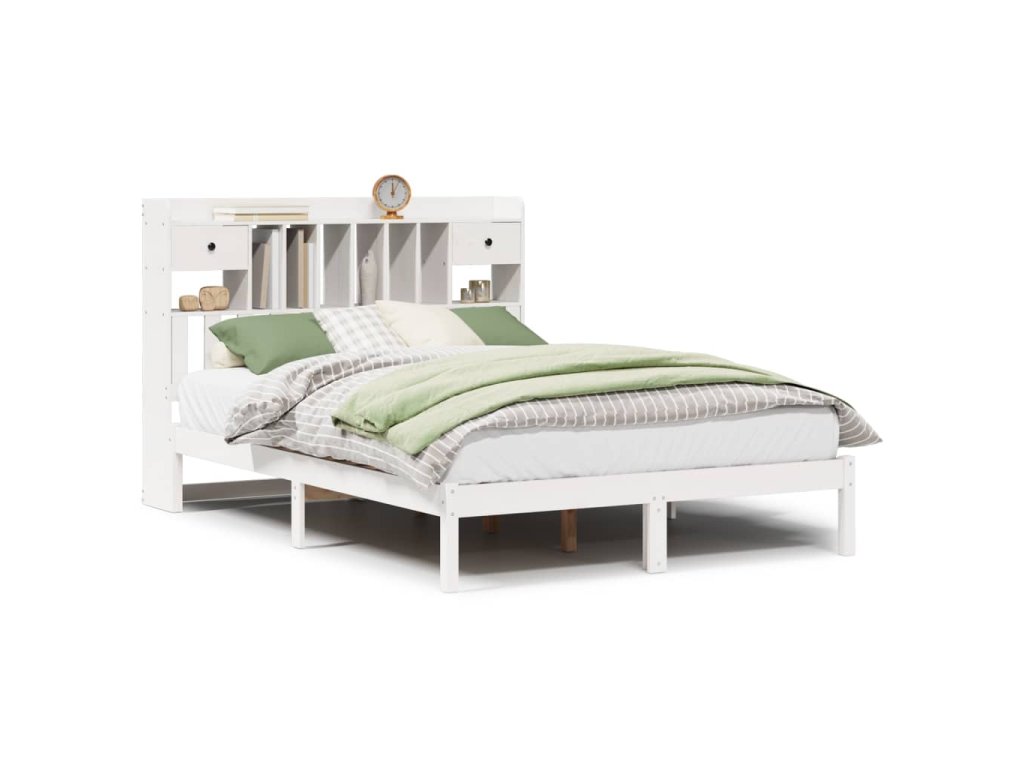 Multidom Posteľ s knižnicou bez matraca biela 160x200cm borovicový masív