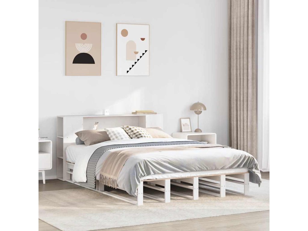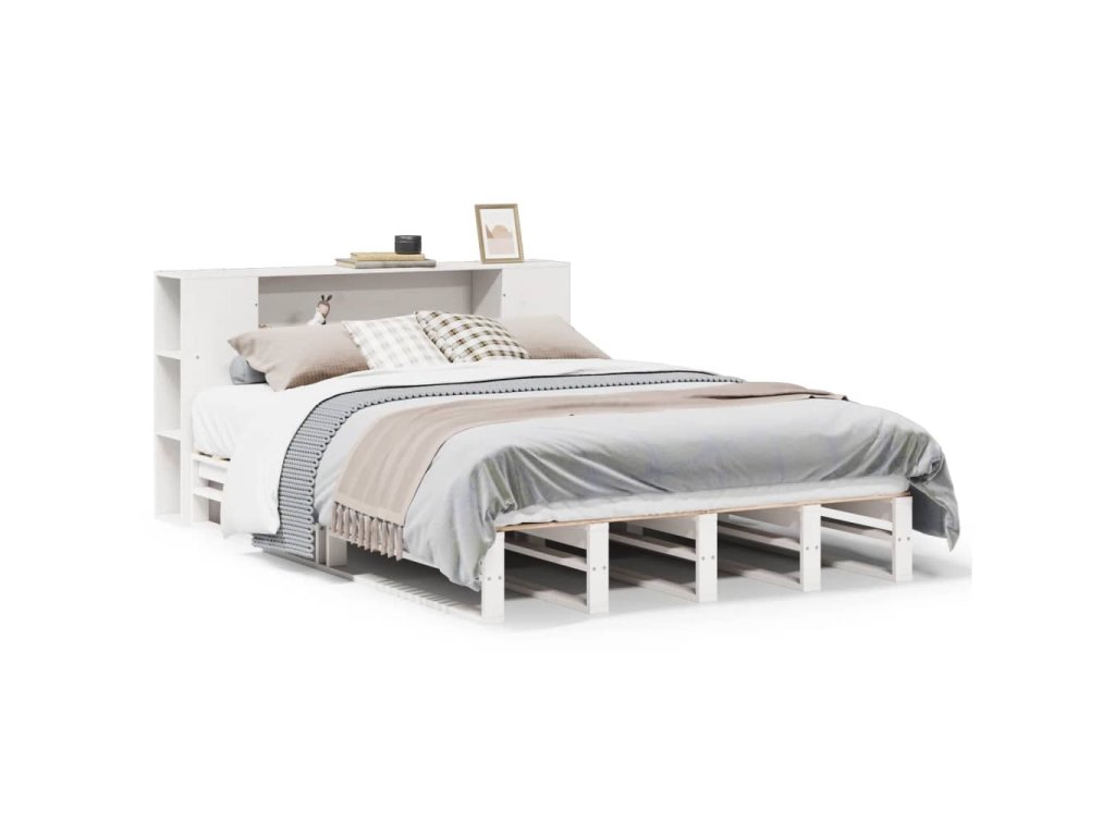 Multidom Posteľ s knižnicou bez matraca biela 160x200cm masívne drevo