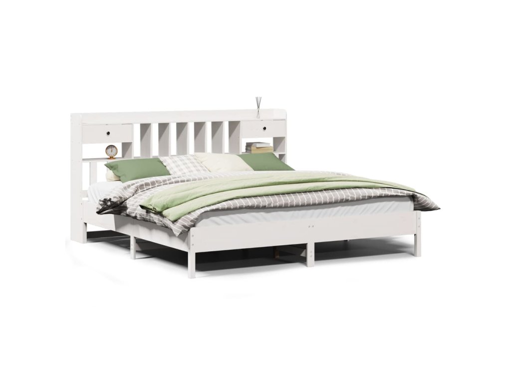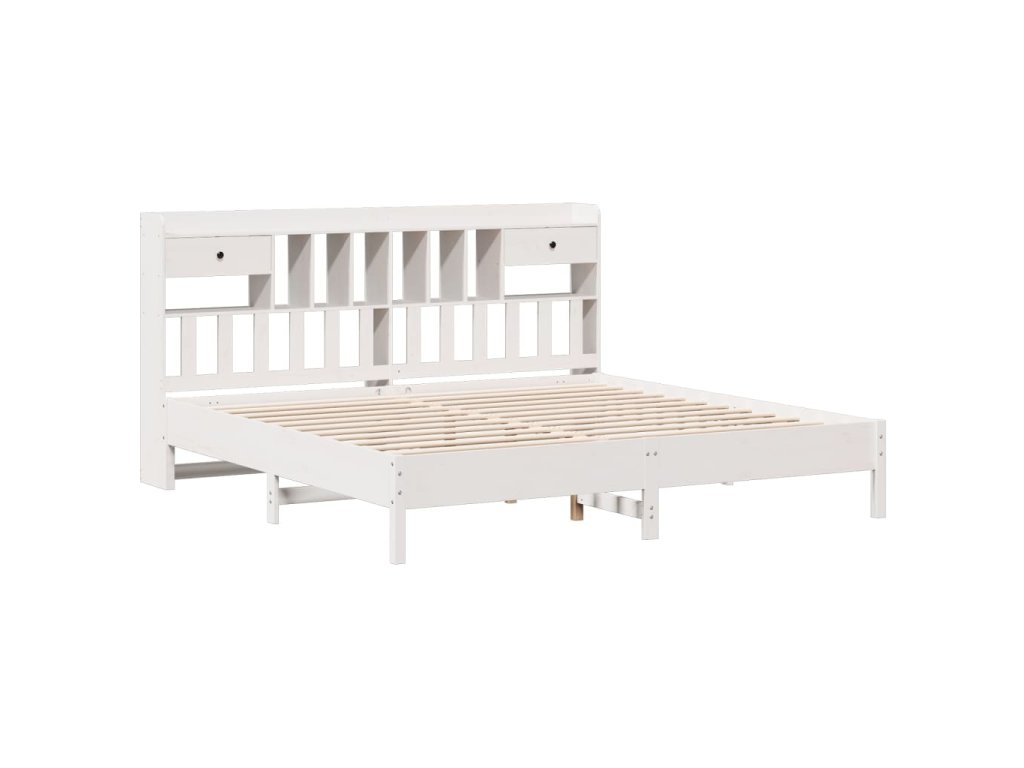 Multidom Posteľ s knižnicou bez matraca biela 180x200cm borovicový masív