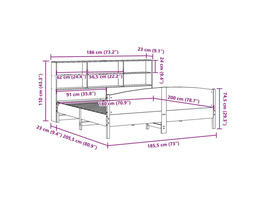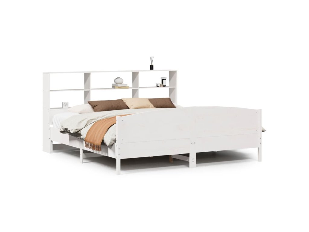 Multidom Posteľ s knižnicou bez matraca biela 180x200cm borovicový masív