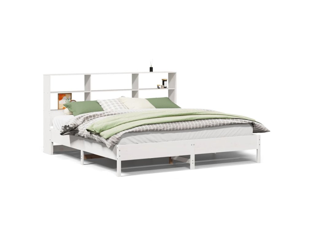 Multidom Posteľ s knižnicou bez matraca biela 180x200cm borovicový masív