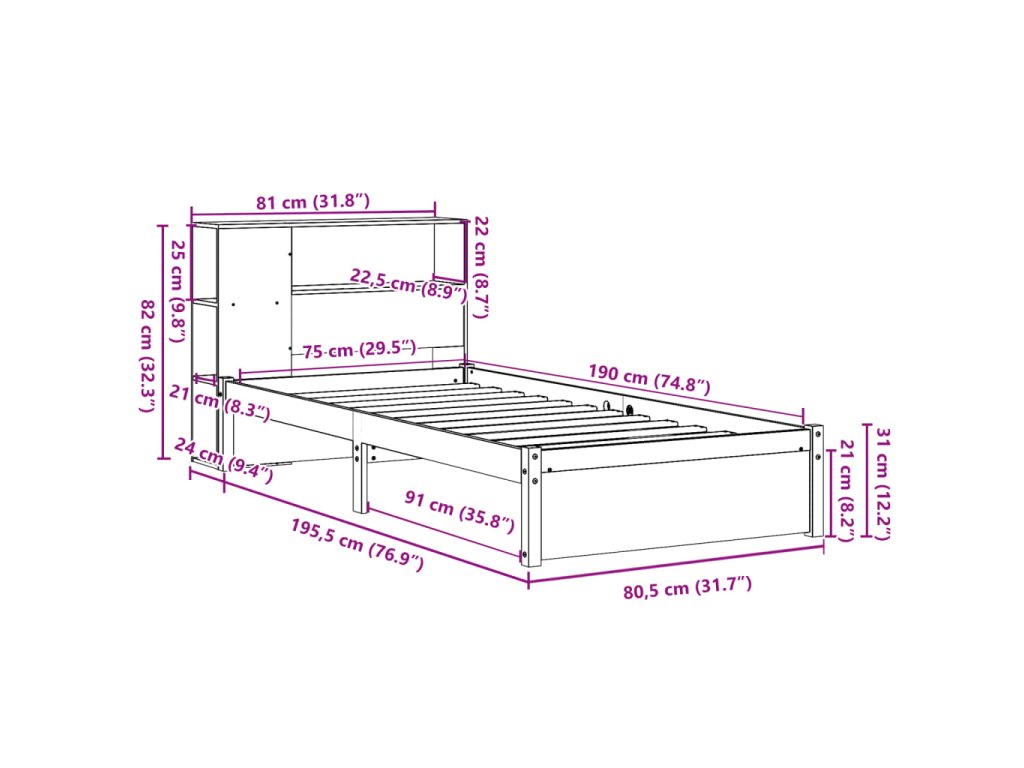 - Celkové rozmery: 195,5 x 80,5 x 31 cm (D x Š x V)