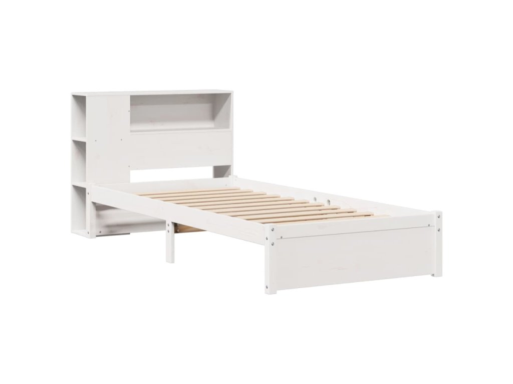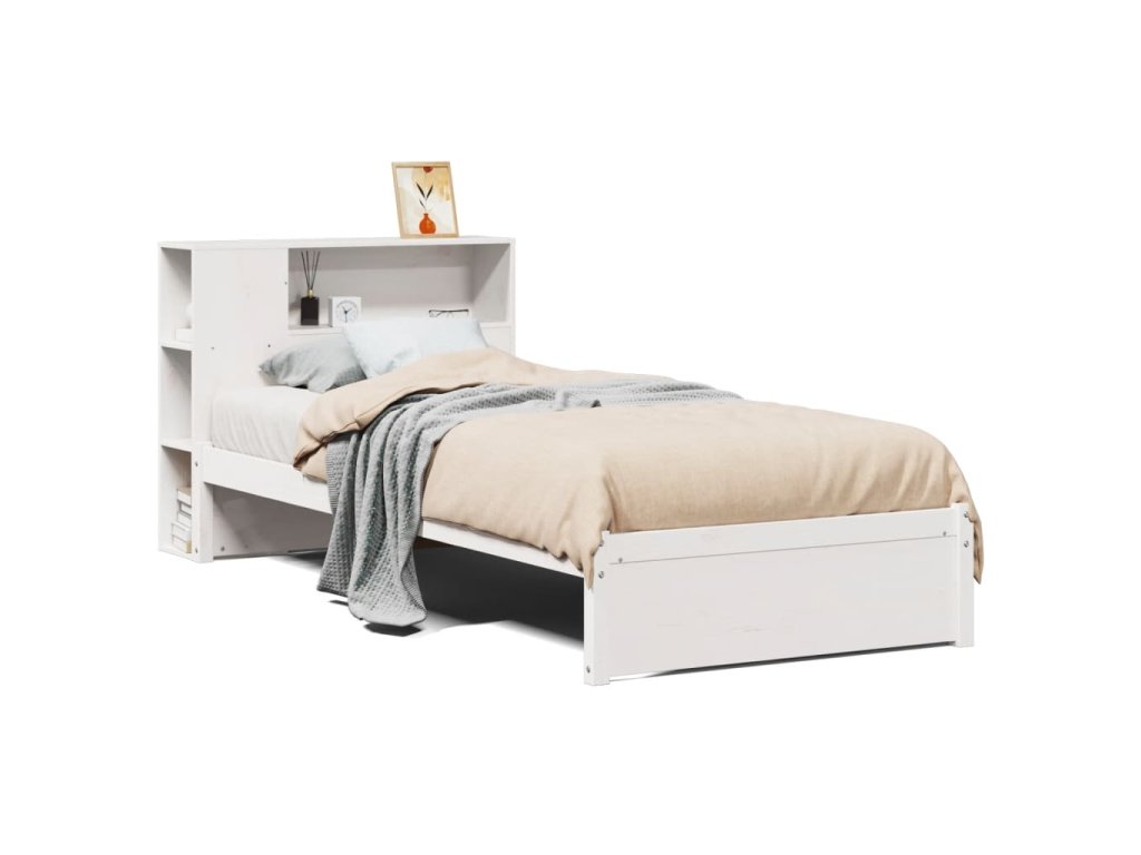 Multidom Posteľ s knižnicou bez matraca biela 75x190 cm borovicový masív