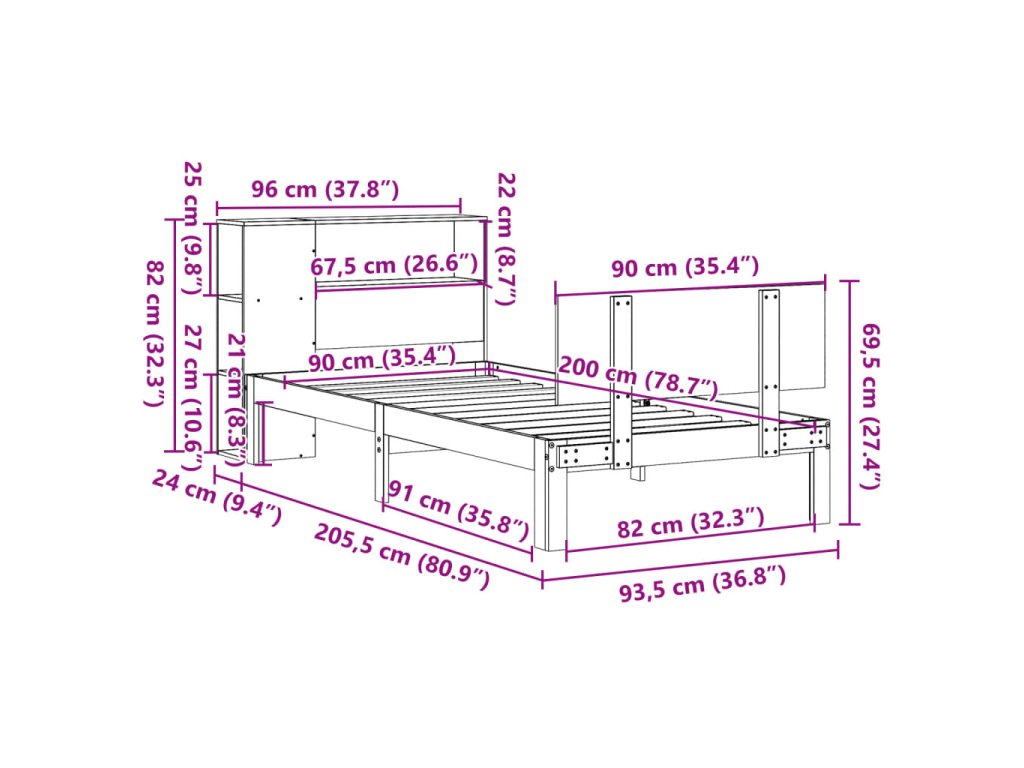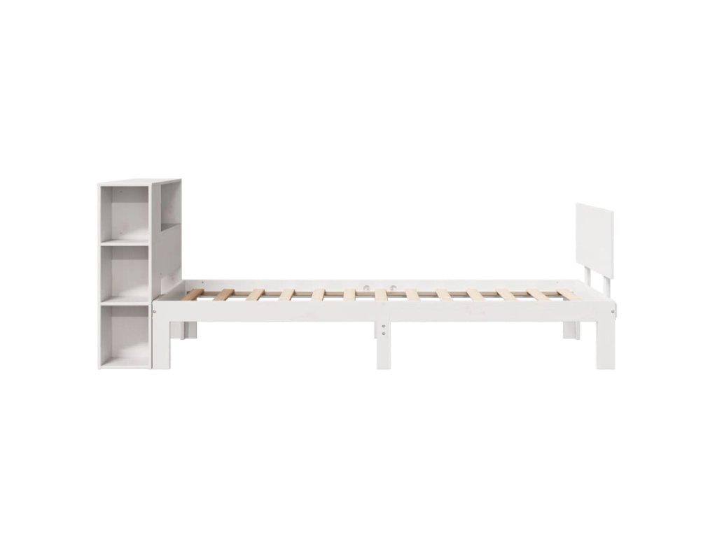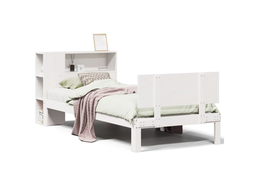 Multidom Posteľ s knižnicou bez matraca biela 90x200 cm borovicový masív