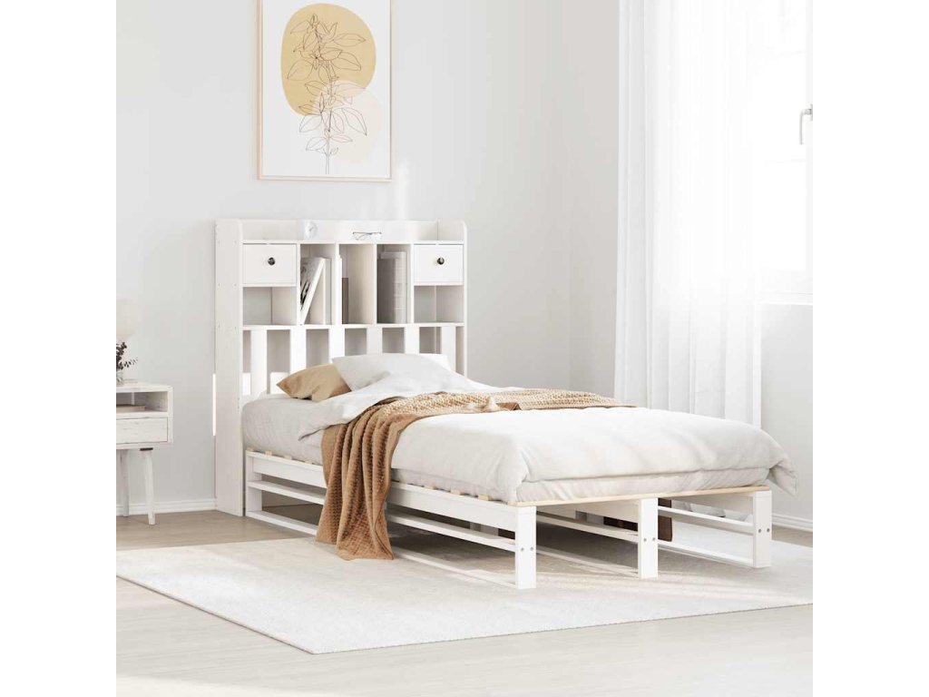 Multidom Posteľ s knižnicou bez matraca biela 90x200 cm borovicový masív