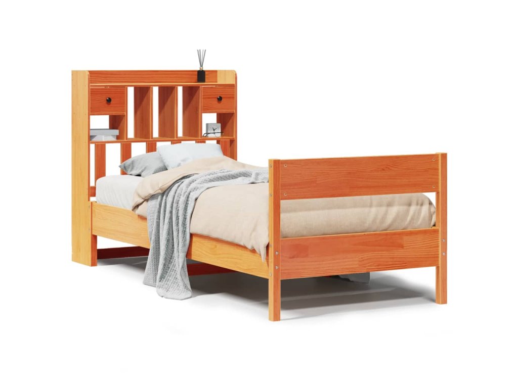 Multidom Posteľ s knižnicou bez matraca vosková 100x200 cm borovica