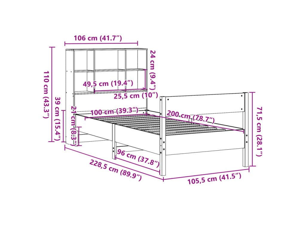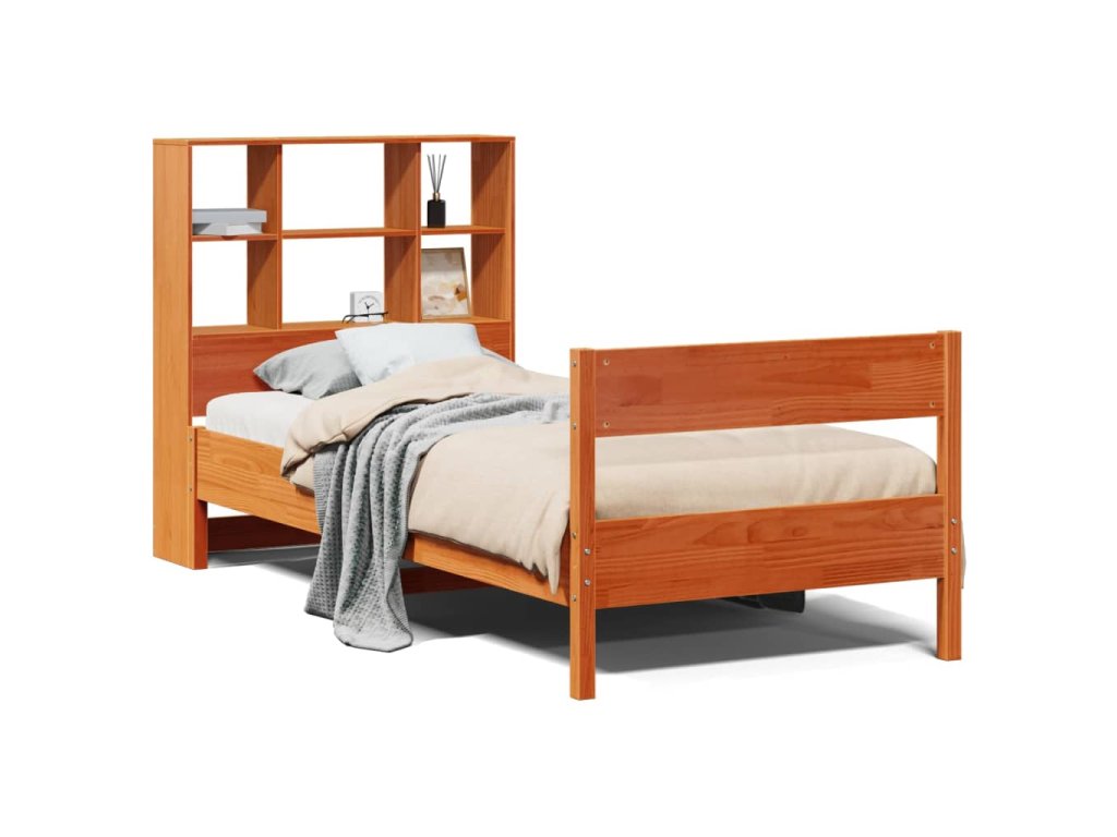 Multidom Posteľ s knižnicou bez matraca vosková 100x200 cm borovica