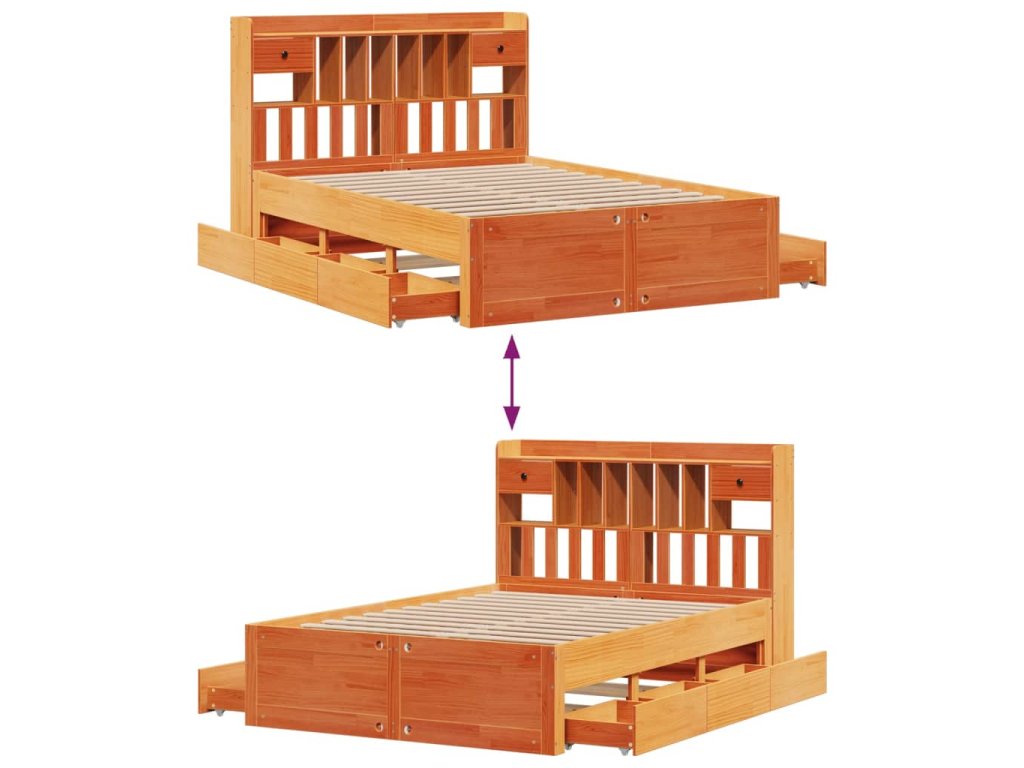 Multidom Posteľ s knižnicou bez matraca vosková 140x200 cm borovica