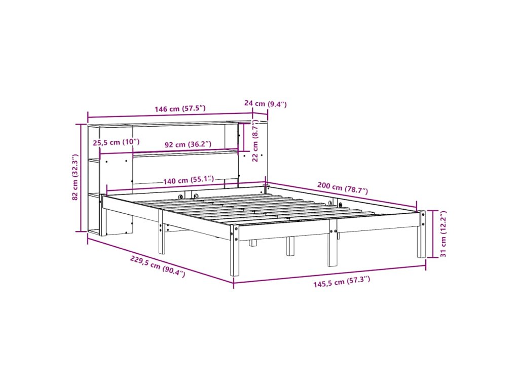 Multidom Posteľ s knižnicou bez matraca vosková 140x200 cm borovica