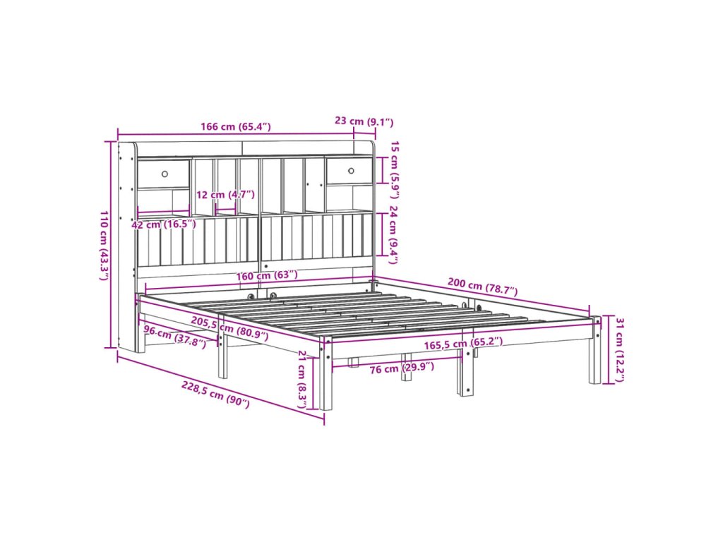 Multidom Posteľ s knižnicou bez matraca vosková 160x200 cm borovica