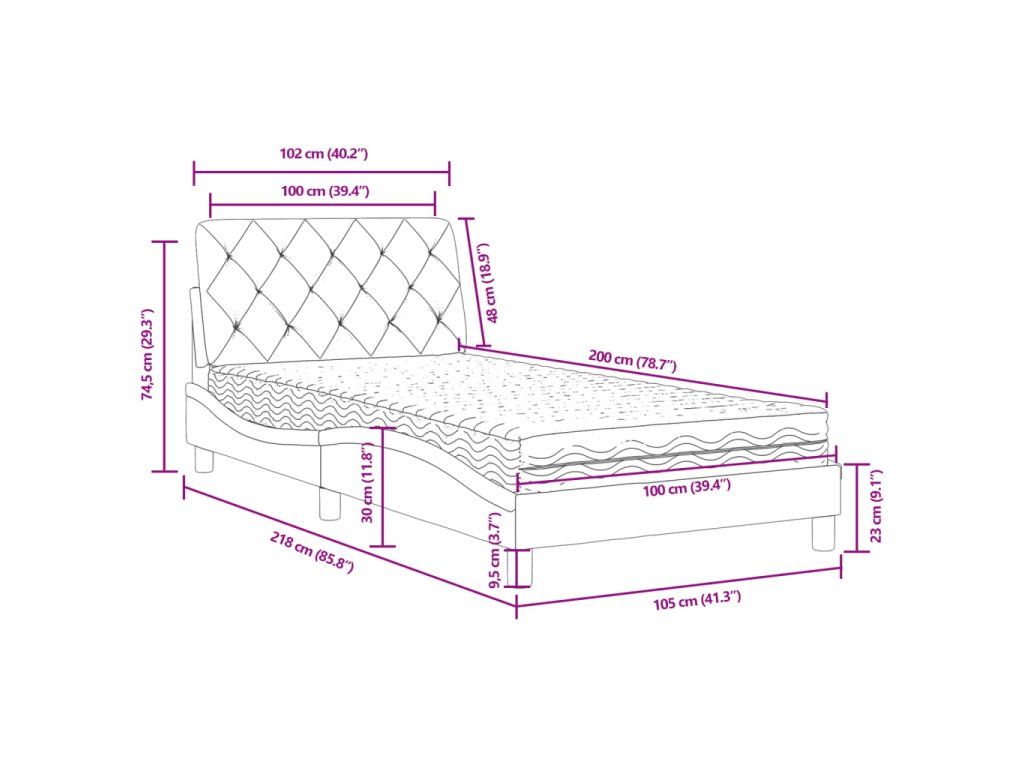 - Celkové rozmery: 100 x 200 x 17 cm (D x Š x H)