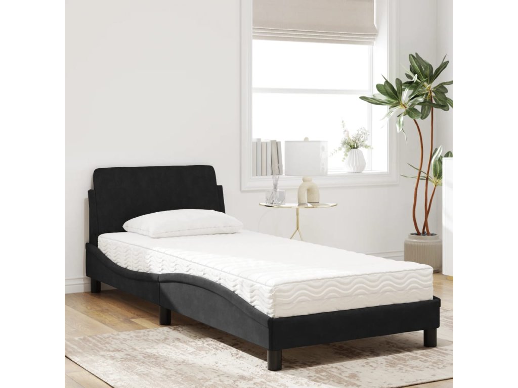 Multidom Posteľ s matracom Dover čierny 90x190 cm zamat