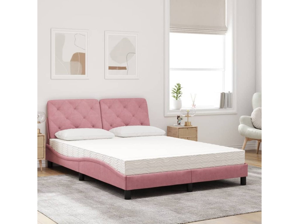 Multidom Posteľ s matracom ružový 140x200 cm zamat