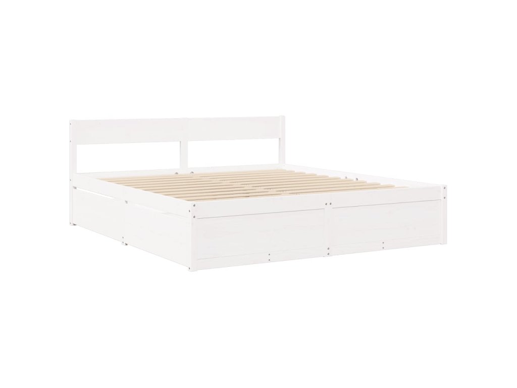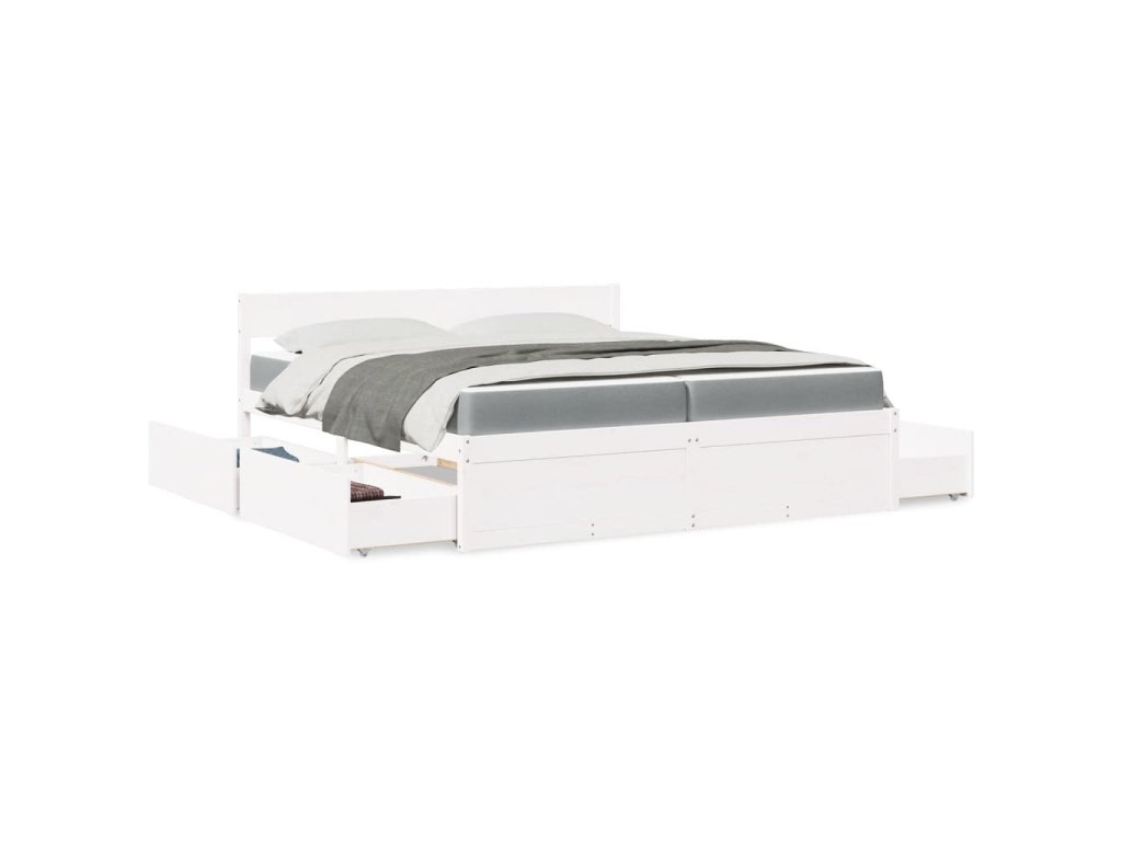 Multidom Posteľ so zásuvkami a matracom biela 200x200cm masívna borovica
