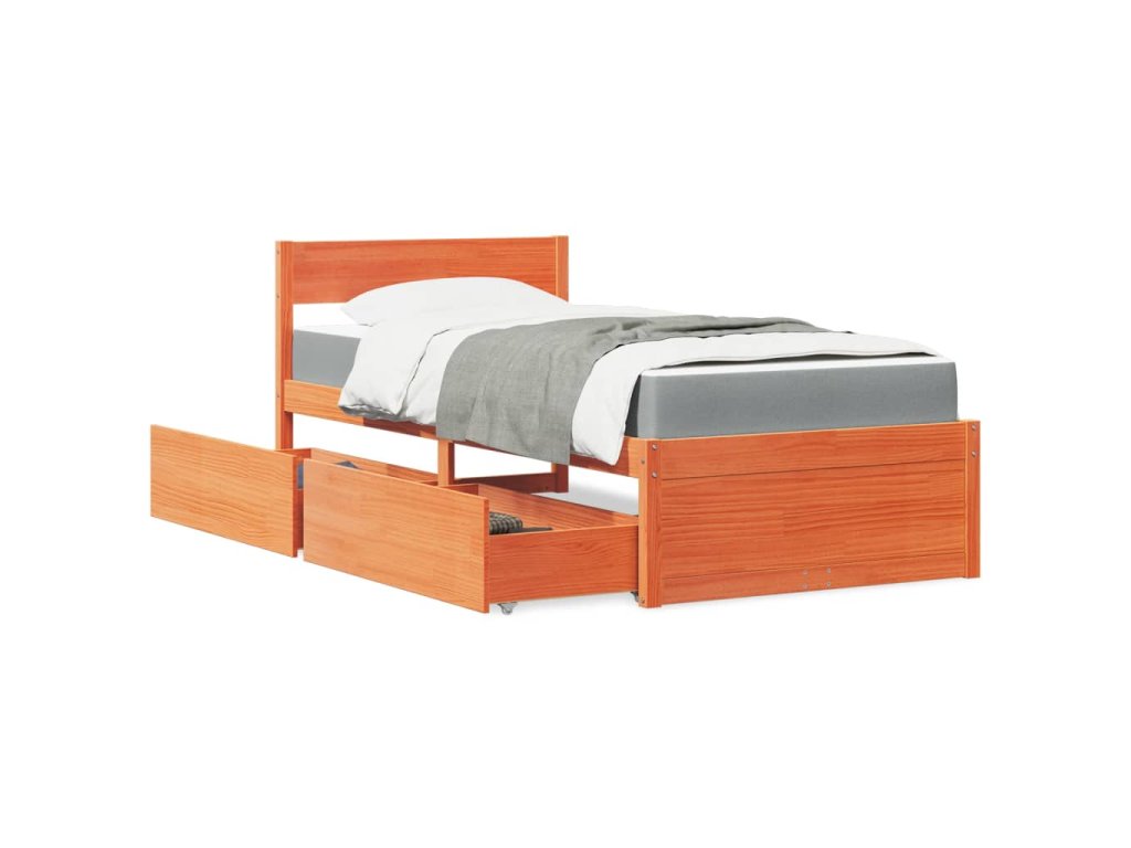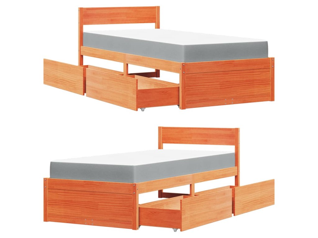 Multidom Posteľ so zásuvkami a matracom voskovo hnedá 120x200cm borovica