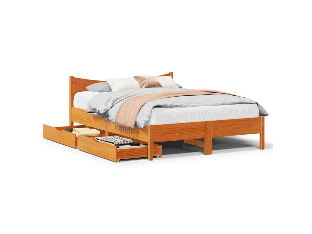 Multidom Posteľ so zásuvkami voskovohnedá 160x200 cm borovicový masív