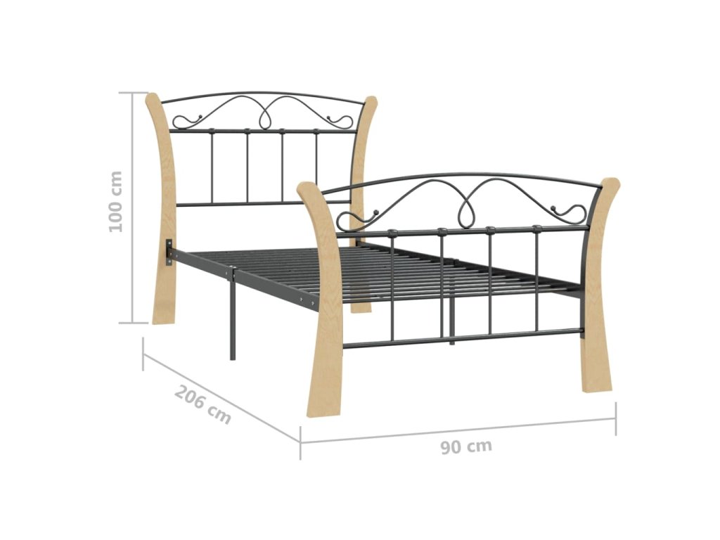 Multidom Posteľný rám, čierny, kovový 90x200 cm