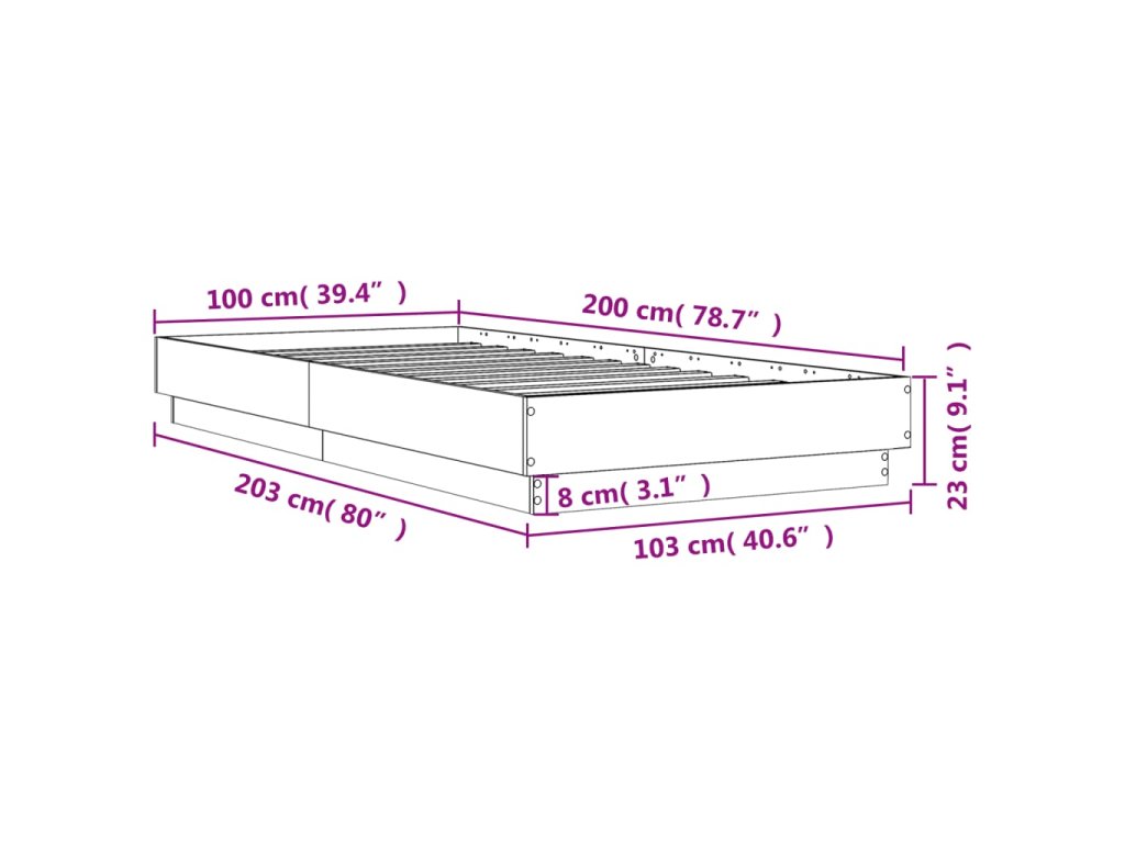 - Celkové rozmery: 203 x 103 x 23 cm (D x Š x V)