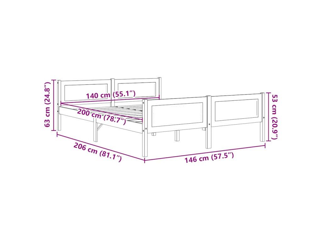 Multidom Posteľný rám borovicový masív sivý 140x200 cm