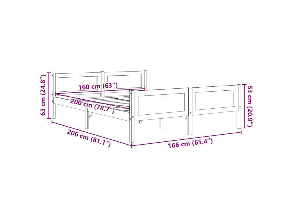 Multidom Posteľný rám borovicový masív sivý 160x200 cm