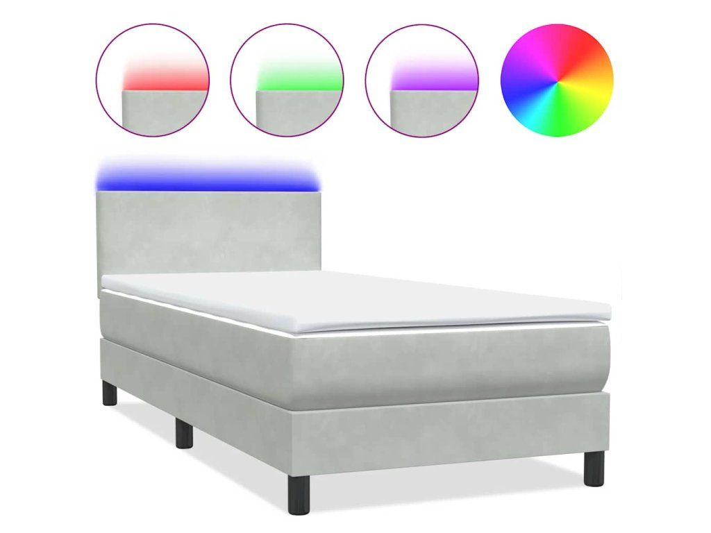 Multidom Posteľný rám boxsping s matracom a LED bledosivý 80x220 cm zamat