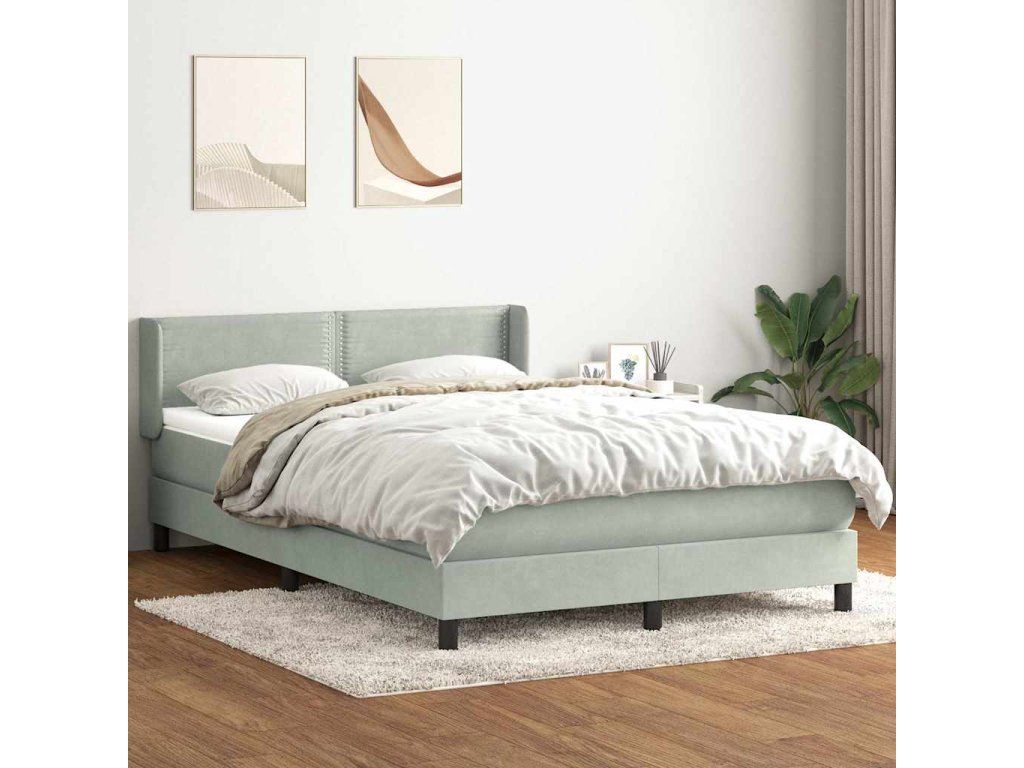 Multidom Posteľný rám boxsping s matracom bledosivý 140x210 cm zamat