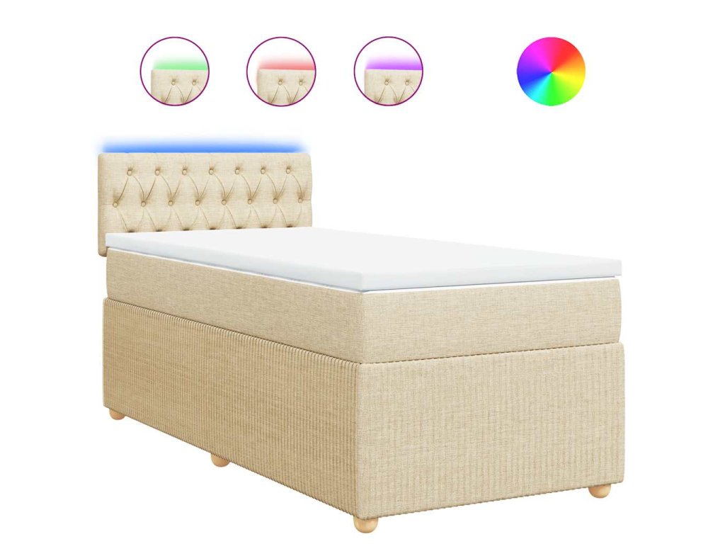 Multidom Posteľný rám boxsping s matracom krémový 90x200 cm látka