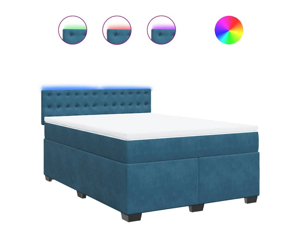 Multidom Posteľný rám boxsping s matracom modrý 140x200 cm zamat