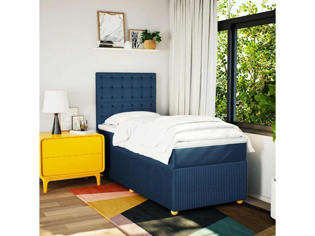 Multidom Posteľný rám boxsping s matracom modrý 80x200 cm látka