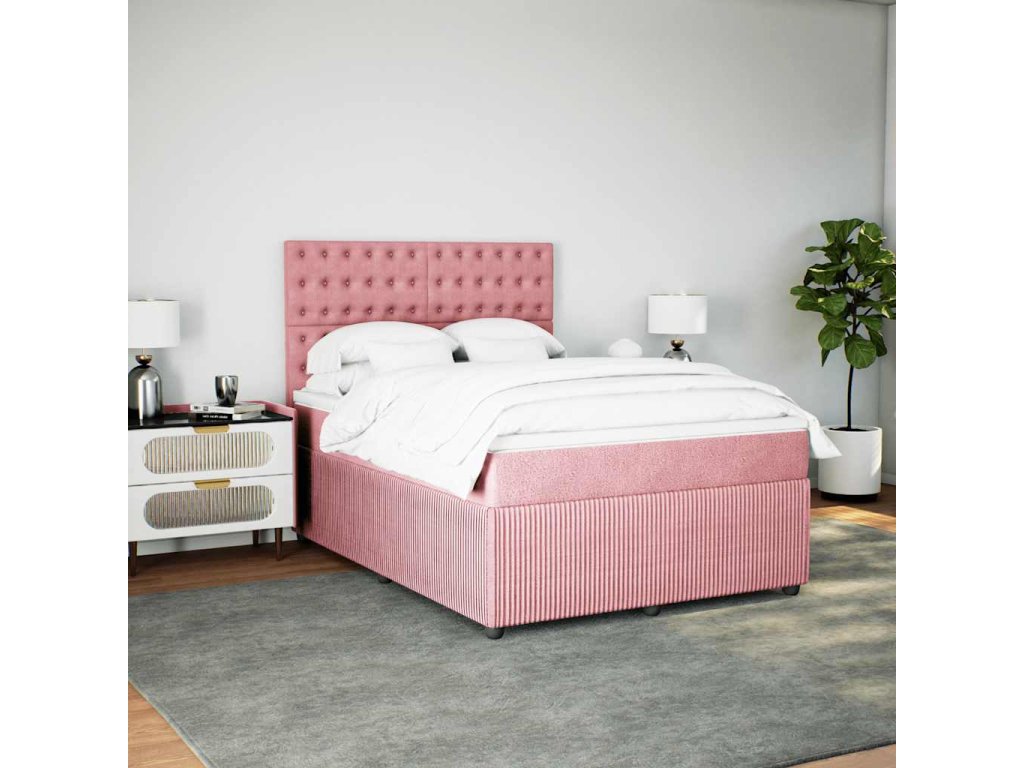 Multidom Posteľný rám boxsping s matracom ružový 140x200 cm zamat