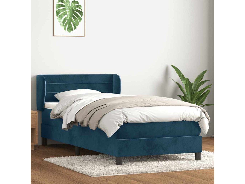 Multidom Posteľný rám boxsping s matracom tmavomodrý 80x210 cm zamat