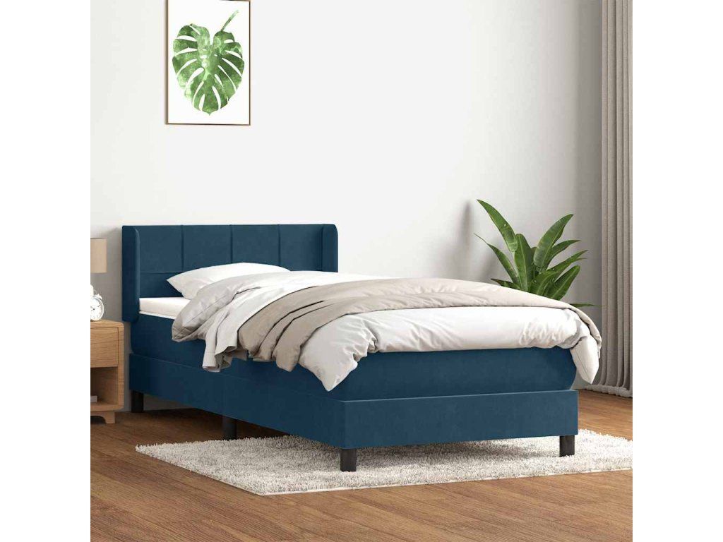 Multidom Posteľný rám boxsping s matracom tmavomodrý 80x210 cm zamat