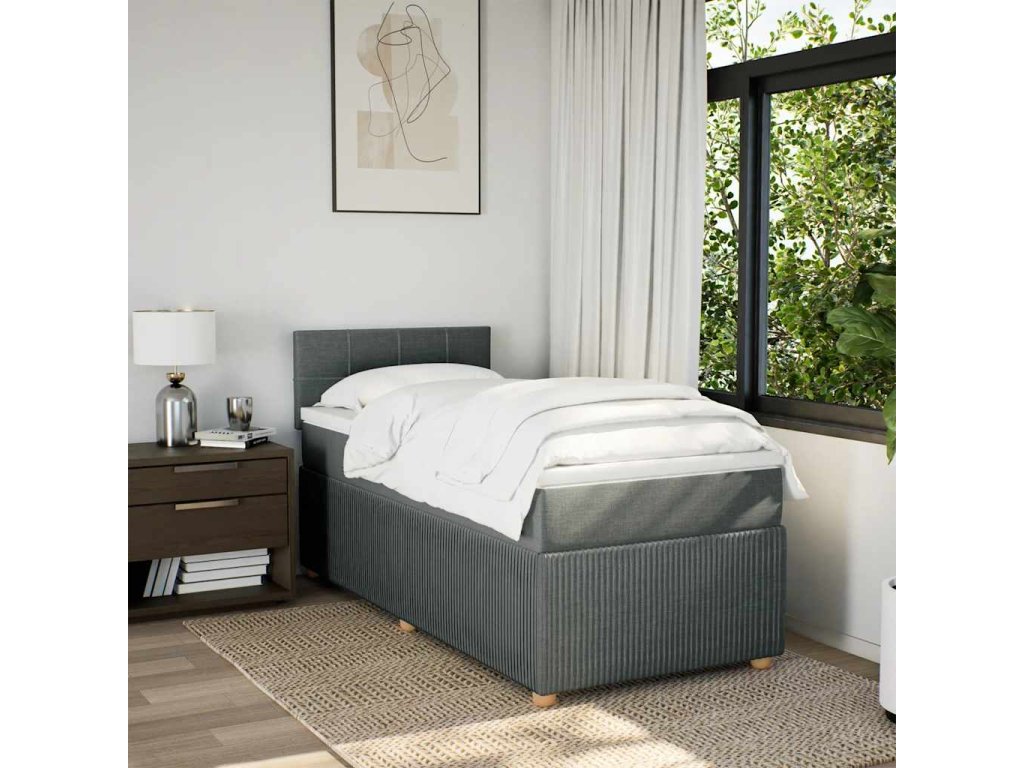 Multidom Posteľný rám boxsping s matracom tmavosivý 80x200 cm látka